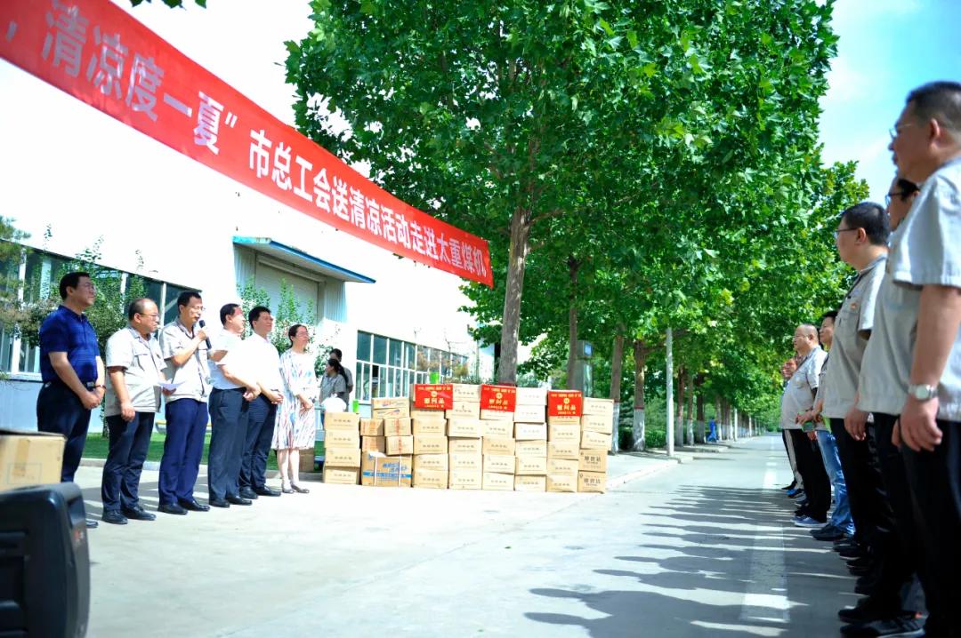 活动中,太原市总工会领导向在场的职工代表发放了慰问品,并深入采掘设备生产车间,了解一线生产情况和防暑降温措施落实情况。
