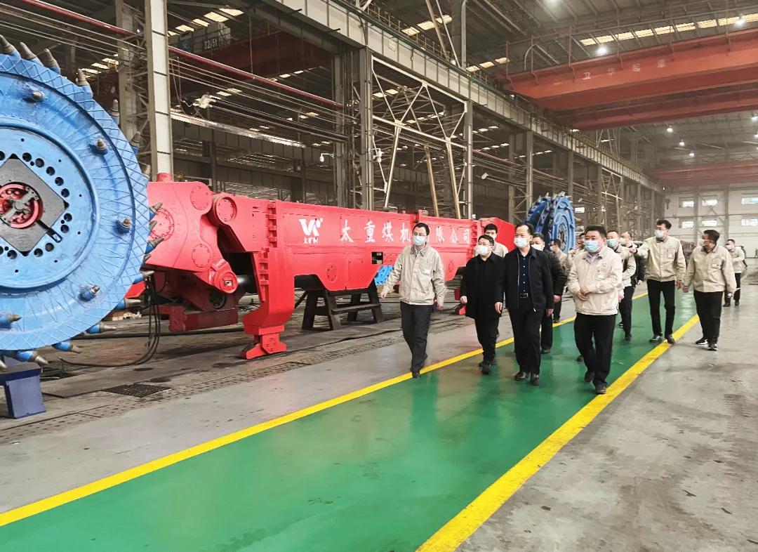 在公司领导的陪同下,齐敏江一行先后参观了展览馆,采掘、重减、海德拉车间,重点参观了矿山采掘装备及智能制造国家重点实验室,并进行座谈。
