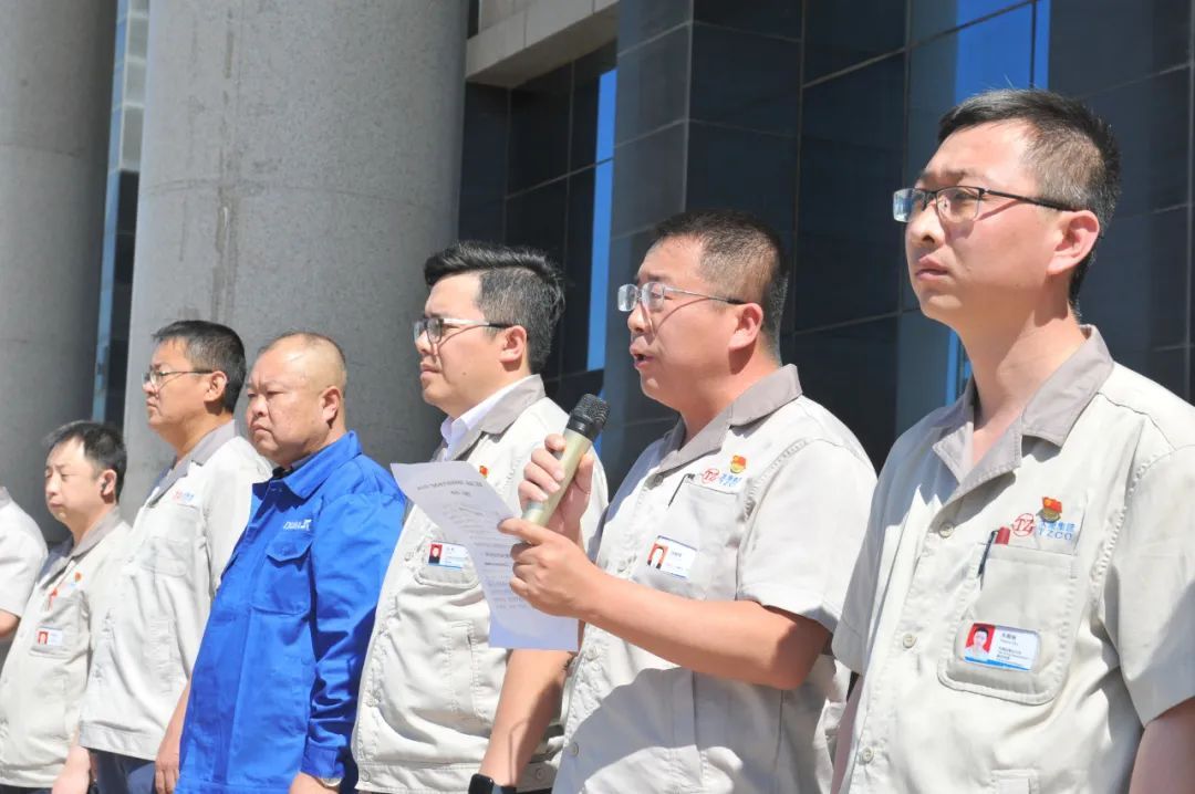 “我宣誓:安全生产是我的神圣职责,坚决落实习近平总书记关于安全生产重要论述,坚持安全发展,强化红线意识,敬畏生命,敬畏制度......”坚定嘹亮的誓言响彻煤机园区楼前广场,一字一句,掷地有声,表达了大家对于安全生产的信心和决心。