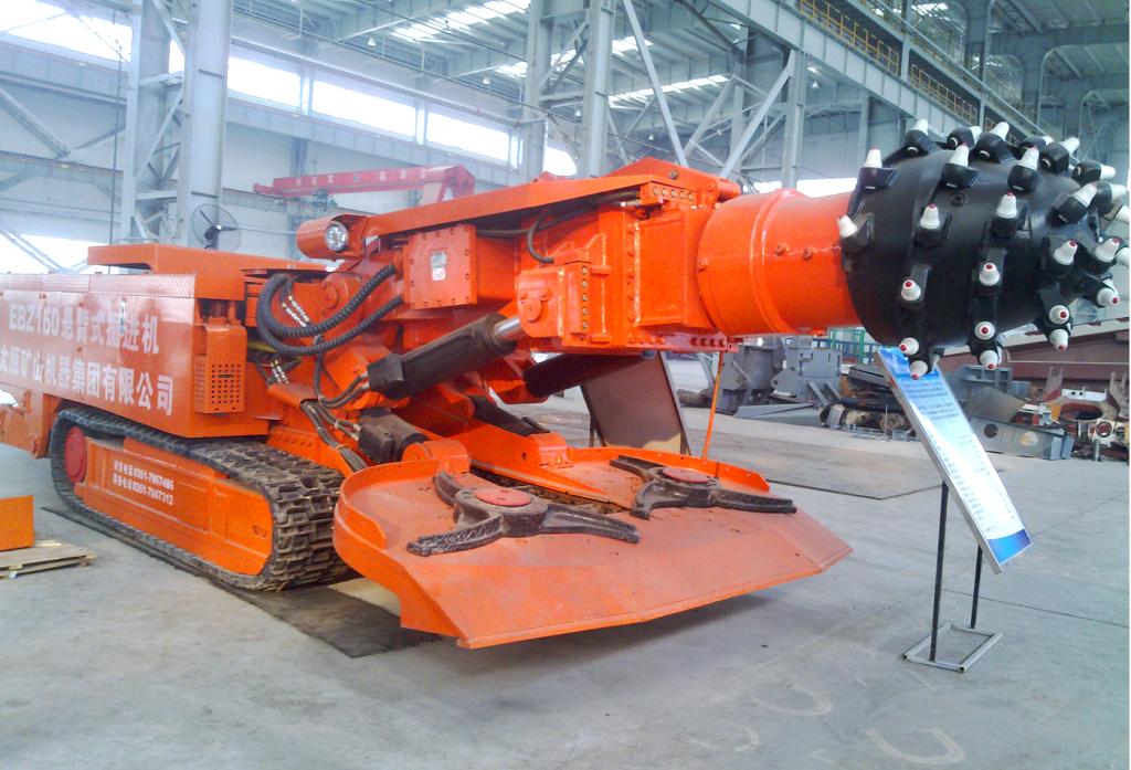 掘进机分公司集设计、生产、销售为一体,主要生产EBZ135/160/200/230/260/300系列掘进机及掘锚支一体机(用于煤巷、半煤岩、岩巷及水利、城市隧道掘进);ZCY-60R/80R装载运输设备侧卸式装岩机,根据市场需求,针对掘进巷道安全研发生产了掘进机配套产品机载超前临时支护。