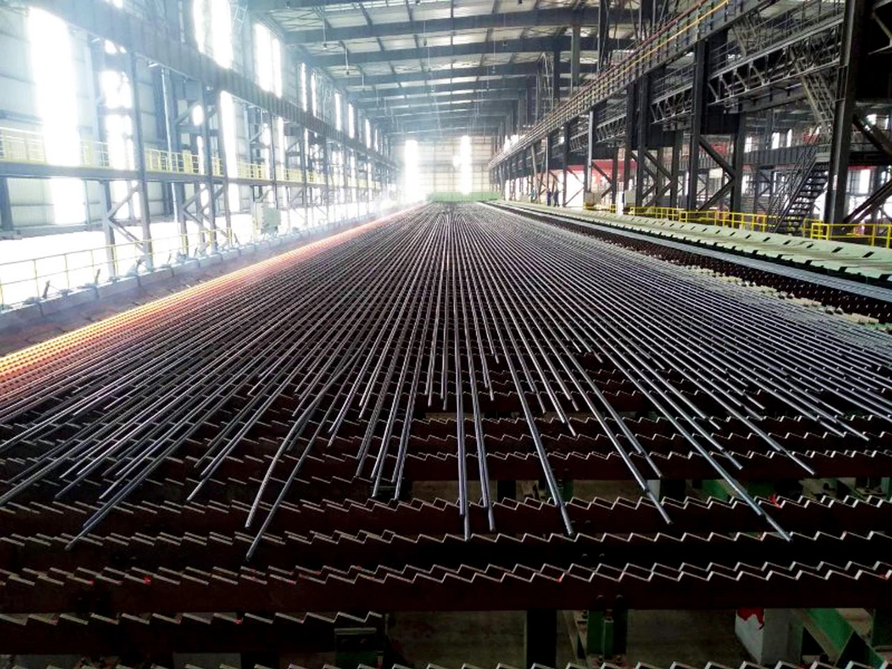 此次年产140万吨棒材项目是仙福钢铁公司产能置换技术升级改造工程,也是推动玉溪市经济社会高质量跨越发展的重要项目之一,可满足当地高层建筑及海洋用钢、抗震用钢、腐蚀用钢的需求。该项目整个轧钢工艺为连续自动化生产,可生产直径12-50mm的线棒材产品20余种,轧线布置粗轧机组6架,中轧机组6架,精轧机组6架,共18架轧机机组,均采用我公司自主研发的最新一代短应力轧机,该机型具有刚度高,承受轧制力大,轴向窜动小,结构紧凑,运行稳定,操作方便等特点,保证了轧制过程的尺寸精度和细晶粒轧控。系列化飞剪和1300吨冷剪也是该生产线亮点之一,是我公司创新研发后的首次成功运用,在减少事故处理,准确倍尺,提高成品剪切效率等方面效果明显,起到了重要作用。